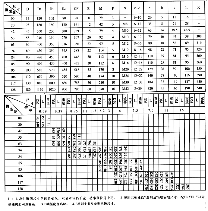 減速器型號規(guī)格及選型參考表