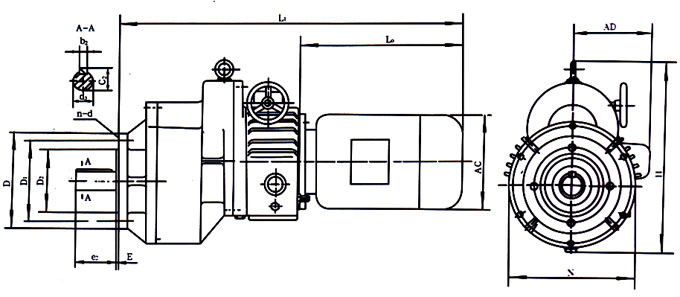 | 機型號 | 安裝尺寸 | 輸出軸伸端聯(lián)接尺寸 | 外形尺寸 | ||||||||||||||||