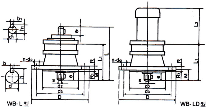 | D | L1 | L | L2 | d3 | n | do | R | R1 | M | d2 | S | b1 | h1 | d1 | e1 | b | h | d | e | 帶D | 不帶D | ||||||