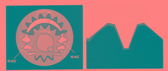 齒輪齒廓為直線,齒圈齒廓為直線共軛線,工作時(shí)幾乎沒有困油區(qū),從而大大降低了泵的噪聲和壓力脈動(dòng)