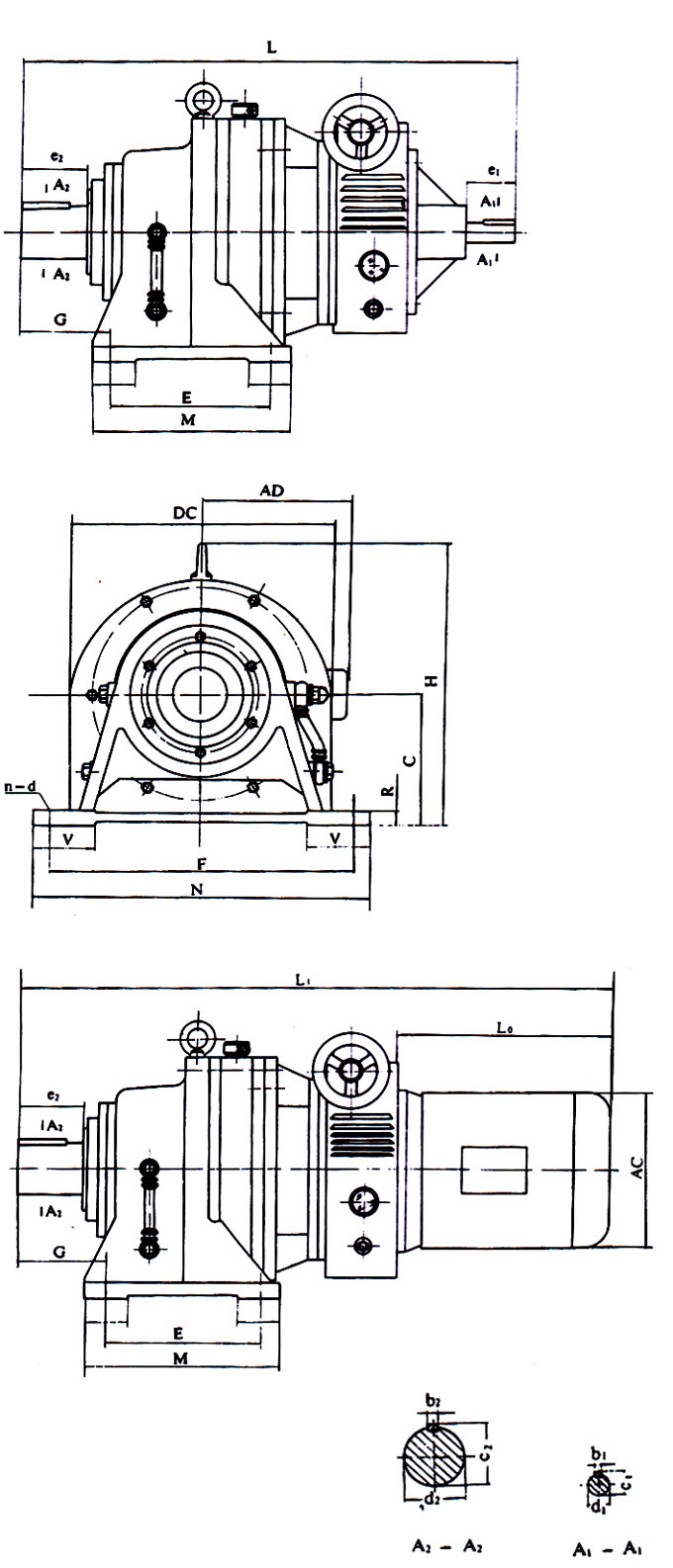 | C | G | E | F | V | R | n | d | d1 | b1 | c1 | e1 | d2 | b2 | c2 | e2 | M | N | H | DC | L | L1 | Lo | AC | AD | ||
